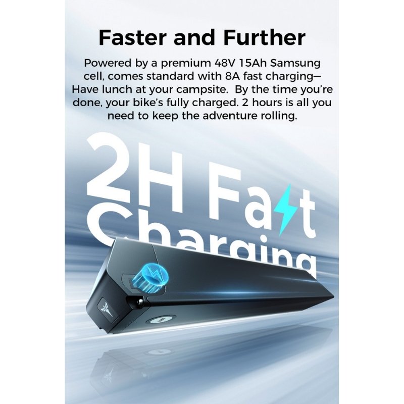 With ultra-strong 90Nm torque, lightning-fast 2-hour charging, GPS smart app anti-theft security and a premium Samsung battery that lets you chase horizons without limits!