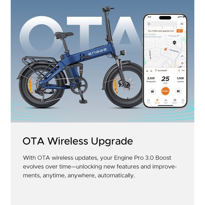 - OTA Wireless Upgrade: Your E-Bike evolves over time with automatic wireless updates that unlock new features and performance enhancements anytime, anywhere